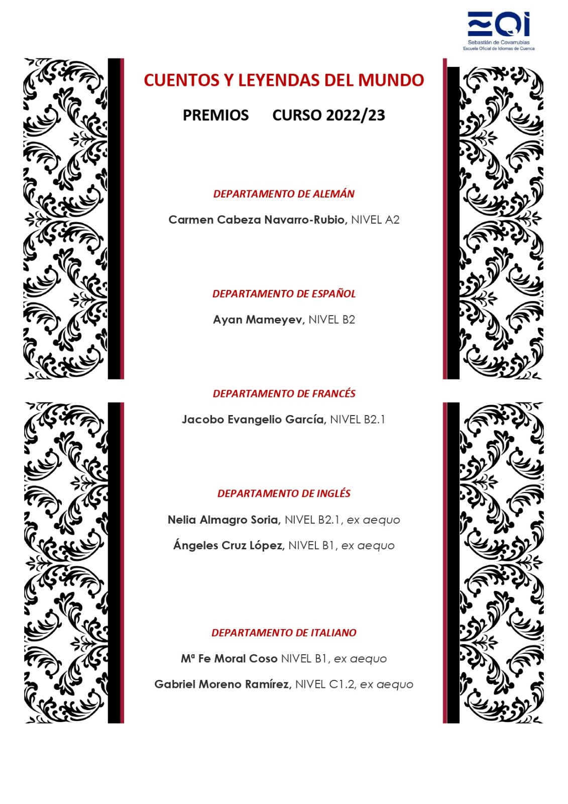 Premios del Concurso de Cuentos y Leyendas. Curso 2022/23